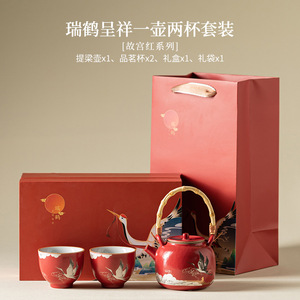 紫禁城の赤い瑞鶴成祥 1 ポットと 2 カップセット ティーポット ティーカップ ティーセット 友人へのクリエイティブなギフトとして