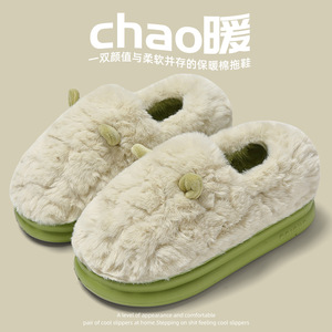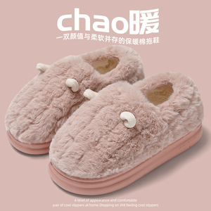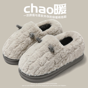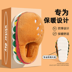 汉堡棉鞋女秋冬季情侣家居室内防滑毛绒保暖卡通包跟棉拖鞋男批发