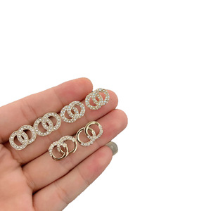 实拍香家高品质双C小香风半边钻满钻珍珠拼钻耳钉女香奶奶耳饰