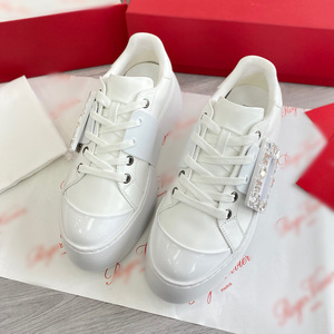 2025 新しい身長を伸ばす白い靴厚底本革カジュアルスポーツスニーカーラインストーンスクエアバックル外国貿易レディースシューズトレンド