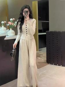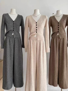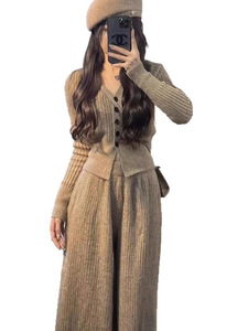 奢缇家女装2025外贸慵懒风V领针织衫开衫毛衣+半身裤休闲套装女