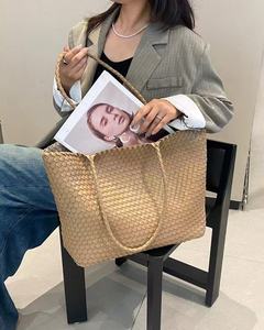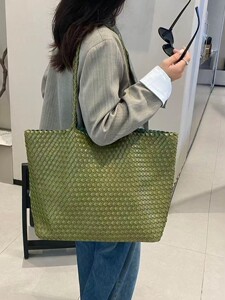 2025 新本革大容量トートバッグ女性の手織りバッグショルダーバケットバッグ旅行休暇通勤バッグ