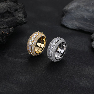 ヨーロッパとアメリカの人気の5列ジルコン回転ヒップホップリングクロスボーダートレンディなブランド回転可能なメンズリングジュエリー卸売