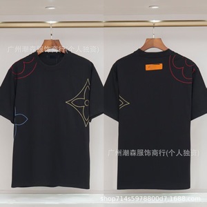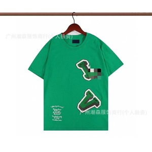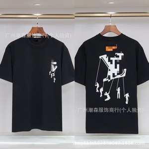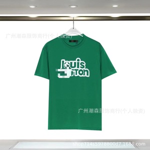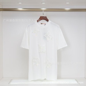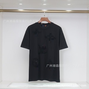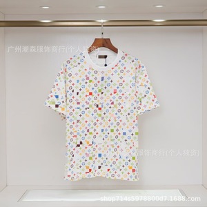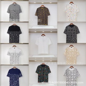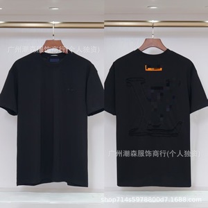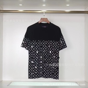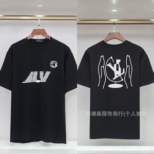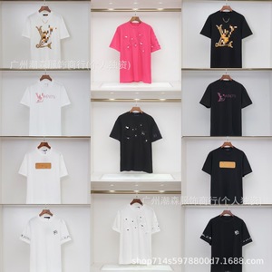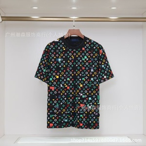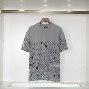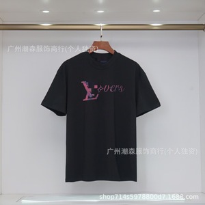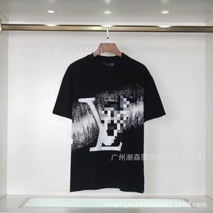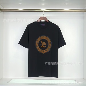 现货跨境奢潮驴家高品质L满印字母短袖外贸经典款圆领男女宽松T恤