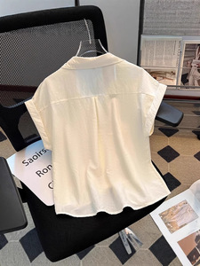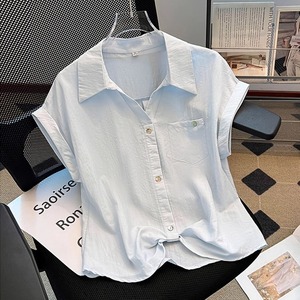 2025夏ブルー半袖シャツ新しいルーズデザインスリムシャツ小さなフライングスリーブ年齢を軽減するショートトップトレンディ