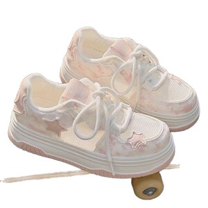 星星板鞋女网面透气2025新款爆款夏季韩版百搭学生厚底休闲运动鞋