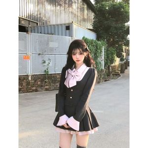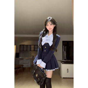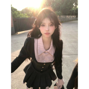 (下内里)短裙秋季收腰显瘦学院风设计感拼接POLO领蝴蝶结连衣裙