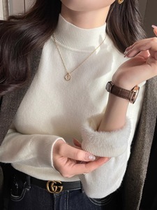 大码加绒加厚毛衣女内搭秋冬季新款保暖半高领打底衫长袖针织上衣