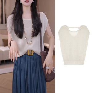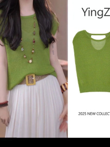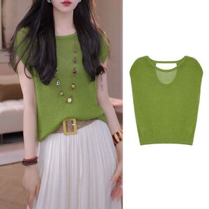 2025 新しいファッションラウンドネック中空デザインハイエンドカジュアル夏ルーズ西洋スタイル無地セータートップ