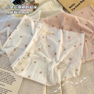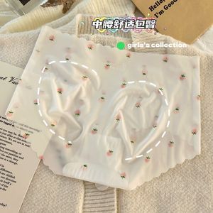 セクシーな女性の純綿イチゴアイスシルクガール超薄型下着女性のシームレスなミッドウエストブリーフ女性