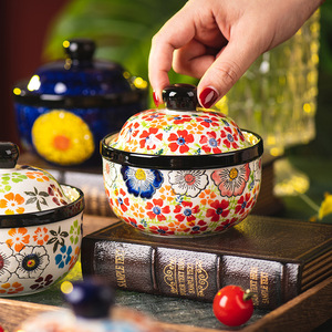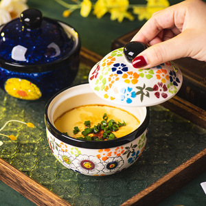 手绘陶瓷小炖盅家用带盖汤盅隔水汤罐蒸蛋碗蒸鸡蛋羹碗甜品碗批发