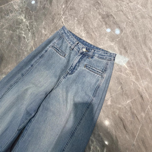 2025 夏の新しいシンプルなファッション多用途スタイルハイウエストデザインストレートジーンズ卸売