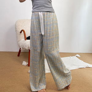 双口袋款棉绸休闲裤女士夏季薄款九分裤加长显瘦阔腿裤大码直筒裤