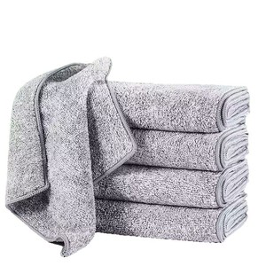 日本製エッジカット竹炭雑巾、グレーと白の雑巾、食器用布、掃除用吸水性たわし、食器用タオル