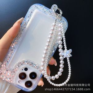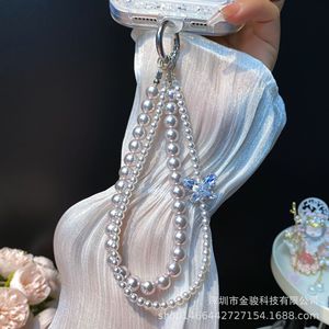 大華パール携帯電話チェーンリストストラップ携帯電話吊り下げチェーン蝶ジルコン新作高級感ダブルチェーン女性卸売