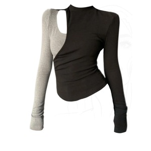 纯欲风辣妹拼色圆领长袖针织衫女秋季新款修身显瘦高级感气质上衣
