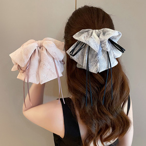高级感时尚百搭抓夹轻盈飘逸雪纺飘带蝴蝶结懒人抓夹清新气质发夹