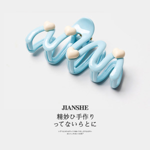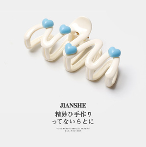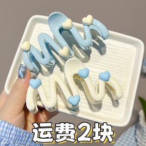 奶油蓝爱心波浪发夹女后脑勺盘发抓夹清新鲨鱼夹子可爱发卡头饰夏