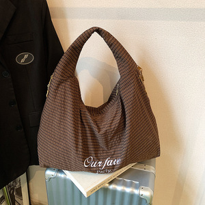 韓国風レイジースタイルリラックス脇バッグ大容量多用途ショルダートートバッグチェック柄バッグ兼用学生布バッグ
