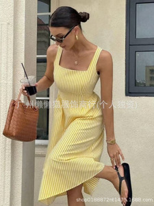 2025新款欧美跨境亚马逊女士条纹无袖时尚休闲连衣裙