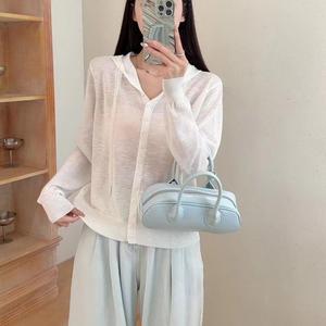 2025夏季新款宽松连帽针织开衫女装长袖百搭薄款显瘦防晒上衣外套