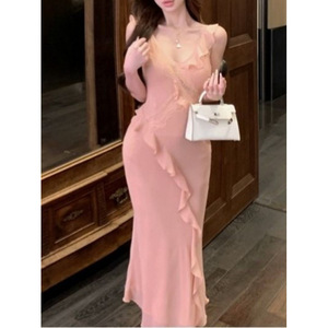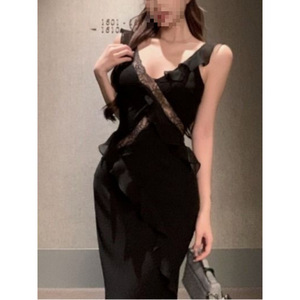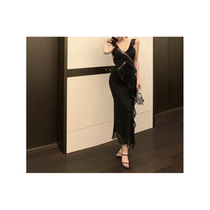 撩人法式纯欲气质优雅荷叶边吊带连衣裙荷叶边黑色纯欲风收腰长裙