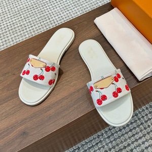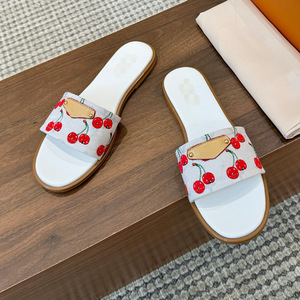 ヨーロッパとアメリカのファッションカジュアルスリッパ 2025 新しい刺繍プリントチェリーレターフラットスリッパビーチ休暇クロスボーダー