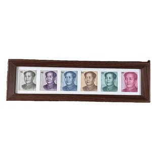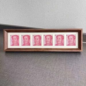 6連フレームブラックウォールナットフォトフレーム、運気アップ、マルチゴールド額縁、人民元装飾画、シンプルで軽い高級感のある横置きテーブル