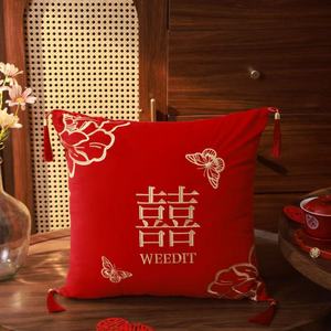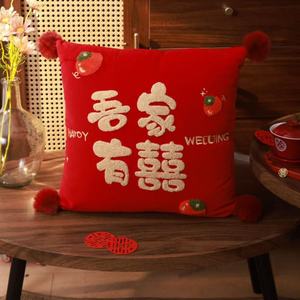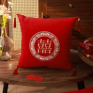 结婚红色喜字抱枕一对新中式婚房布置装饰沙发靠枕婚礼创意靠枕批