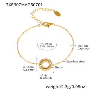 TXE307-ゴールド 5A ジルコン ダブル リング ブレスレット 16+5cm