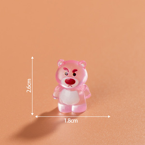 光沢のあるイチゴクマシリーズ小さな装飾品マイクロ風景発光ミニチュアクマ樹脂クラフトリビングルームのデスクトップ装飾品