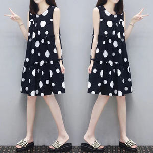 波点连衣裙女2025夏季新款中长款宽松显瘦遮肚无袖背心A字娃娃裙