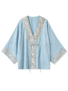 国民スタイルの新しい中国風の重工業ビーズ刺繍ジャカードバックルジャケット女性のファッションライト高級レーヨントップ N6093
