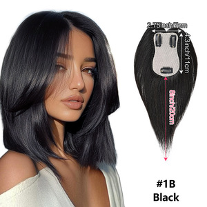 亚马逊热销欧美真人发女士补发块遮白发增发量蓬松高颅顶假发片