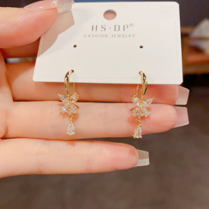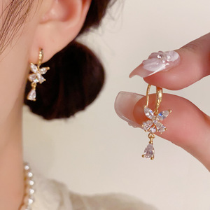 夏季新款满钻蝴蝶水滴耳钩女精致时尚百搭高级感耳坠饰品源头厂家