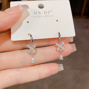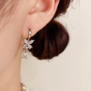 银色-满钻蝴蝶水滴耳钩(加厚真金电镀)