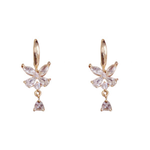 金色-满钻蝴蝶水滴耳钩(加厚真金电镀)