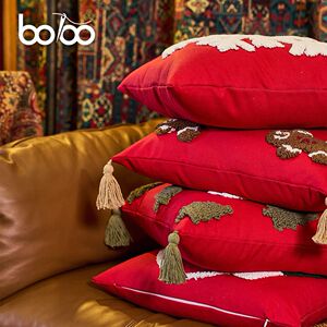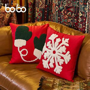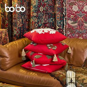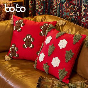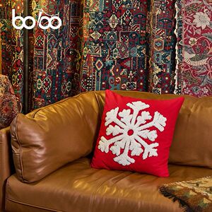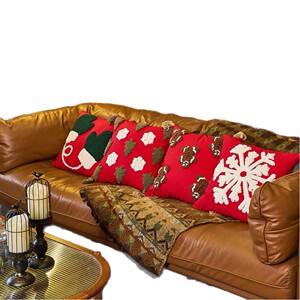 赤い背景のクリスマススノーフレーク枕カバーファー刺繍クッションクリスマス枕カバーソファクッションには芯は含まれていません