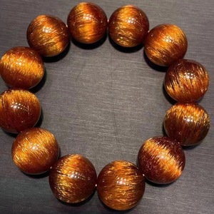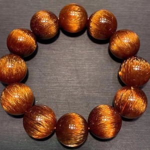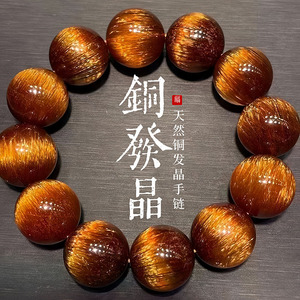 天然巴西老矿铜顺发猫眼手链19.5mm大颗粒130.6g铜发晶手串男