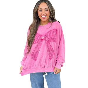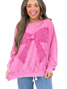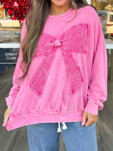 2025 秋と冬の新スタイルウォッシュルーズフード付きスウェットシャツ女性のヨーロッパとアメリカのファッションボウラウンドネックニットプルオーバー女性