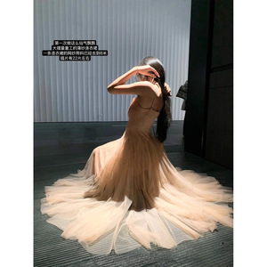 不是七十粉色纱裙吊带连衣裙女夏绝美小裙子大摆长裙露背仙女裙