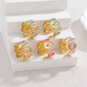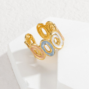 ヨーロッパとアメリカのファッショナブルなカラフルな中空楕円形リングニッチハイエンドINSインターネットセレブスタイルの女性用ステンレススチールリング
