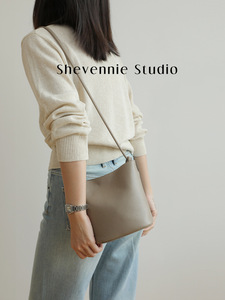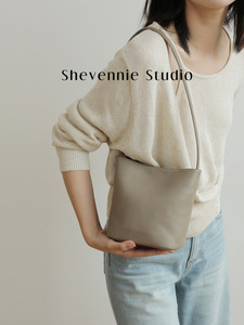 水桶包女士单肩斜挎包高级感小众头层牛皮通勤手提腋下包托特包