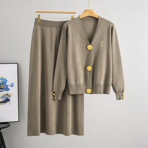 クロスボーダービッグメタルボタンニットセーターツーピースセット女性のための秋と冬 2025 ルーズカジュアルワイドレッグパンツスーツ