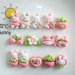 光沢のある漫画イチゴウサギ DIY クリーム接着剤携帯電話ケース下駄バックル手作りヘアピンヘッドロープジュエリー材料