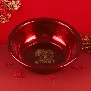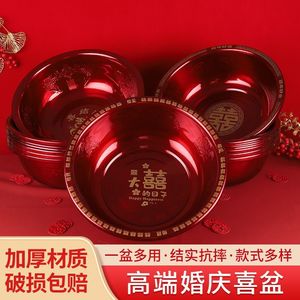 结婚喜盆不锈钢加厚婚庆用品女方嫁妆洗脸盆一对套装新娘陪嫁红盆