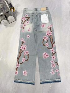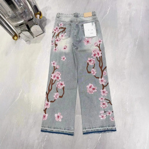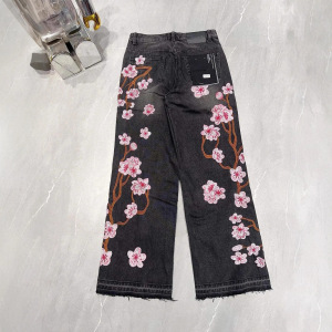 ヨーロッパとアメリカのクロスボーダーストリートゴシックスタイル桜刺繍ジーンズy2k男性と女性の同じスタイルのレトロファッションストレートパンツ