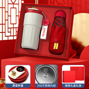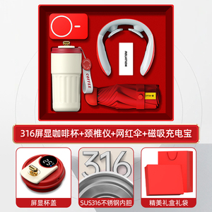 スマートコーヒーカップ温湿布頚椎器具磁気吸引ワイヤレスパワーバンクポータブル傘レッド4点セットギフトボックス付き