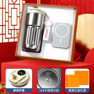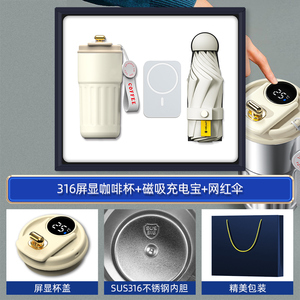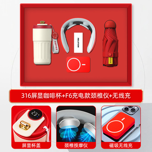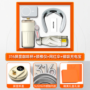 スマートコーヒーカップ温湿布頚椎器具磁気吸引ワイヤレスパワーバンクポータブル傘オフホワイト4点セットギフトボックス付き