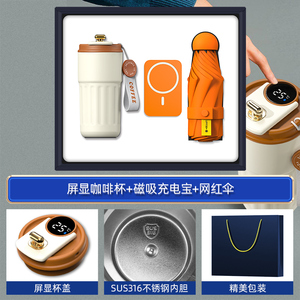 スマートコーヒーカップ温湿布頚椎器具磁気吸引ワイヤレスパワーバンクポータブル傘オレンジ4点セットギフトボックス付き